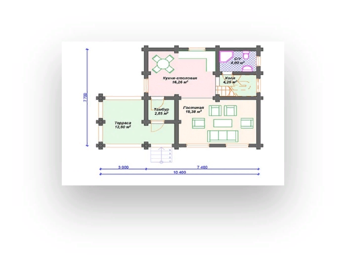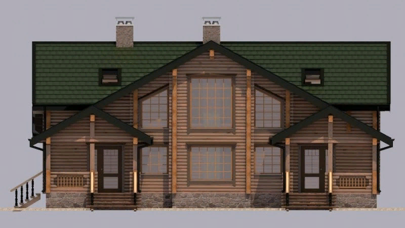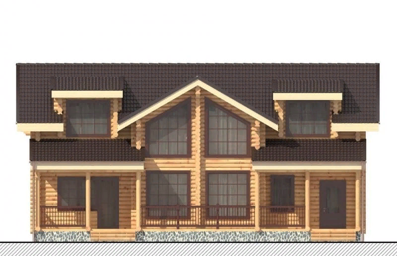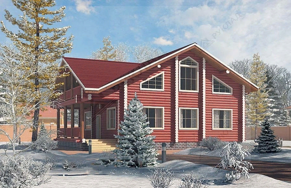 Проект двухэтажного дома из оцилиндрованного бревна с террасой